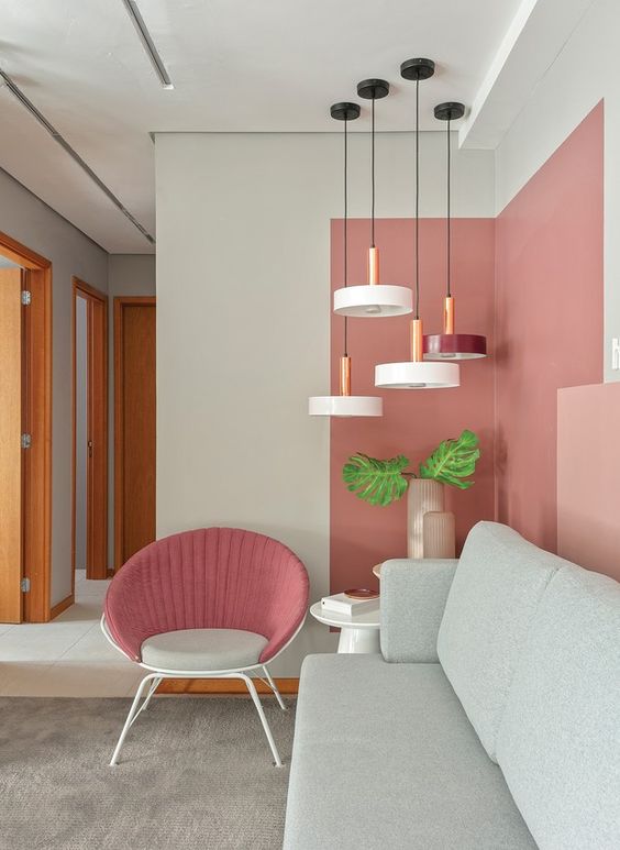 Nowoczesny trend w projektowaniu zaleca, aby nie używać różu wyłącznie w wystroju, nawet w zakresie kilku odcieni. Konieczne jest zrównoważenie go neutralnym lub chłodnym odcieniem. Podłączając z bielą — stworzymy poczucie czystości. Szarość sprawi, że róż, nawet w najmniejszym stężeniu, będzie jeszcze bardziej wyrazista. Z kolei chłodne odcienie niebieskiego i zieleni nadadzą wnętrzu w połączeniu z ciepłym różem wrażenie świeżości i przytulności jednocześnie.