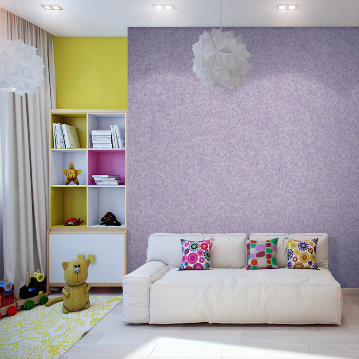 Tynk tekstylny w pokoju dziecięcym będzie dobrym tłem lub pozwoli stworzyć fantastyczne bajeczne wzory. Powłoki te są w 100% przyjazne dla środowiska, miękkie w dotyku i pozwalają na tworzenie bezszwowych powłok. Z ich pomocą możesz rysować na ścianach za pomocą szablonów lub gotowych konturów.