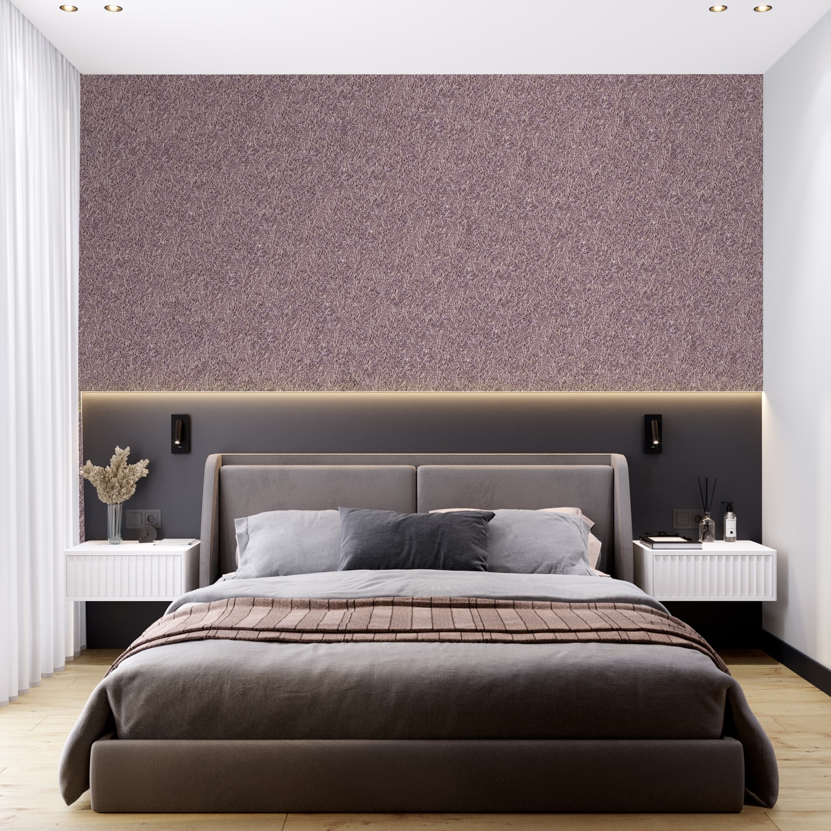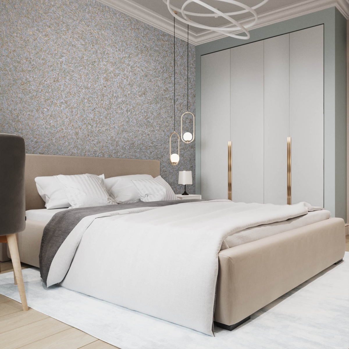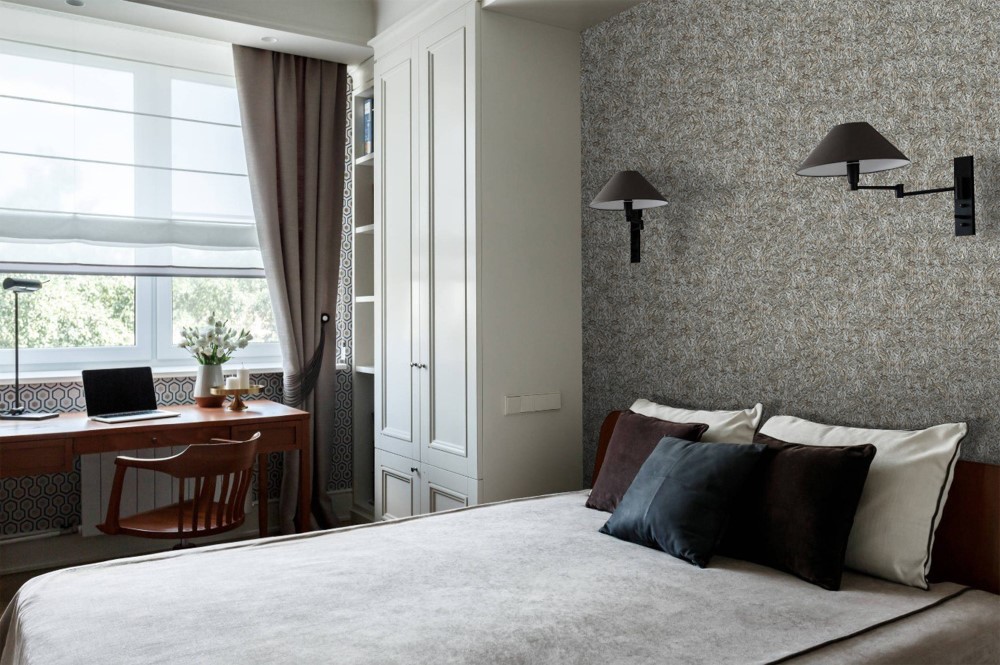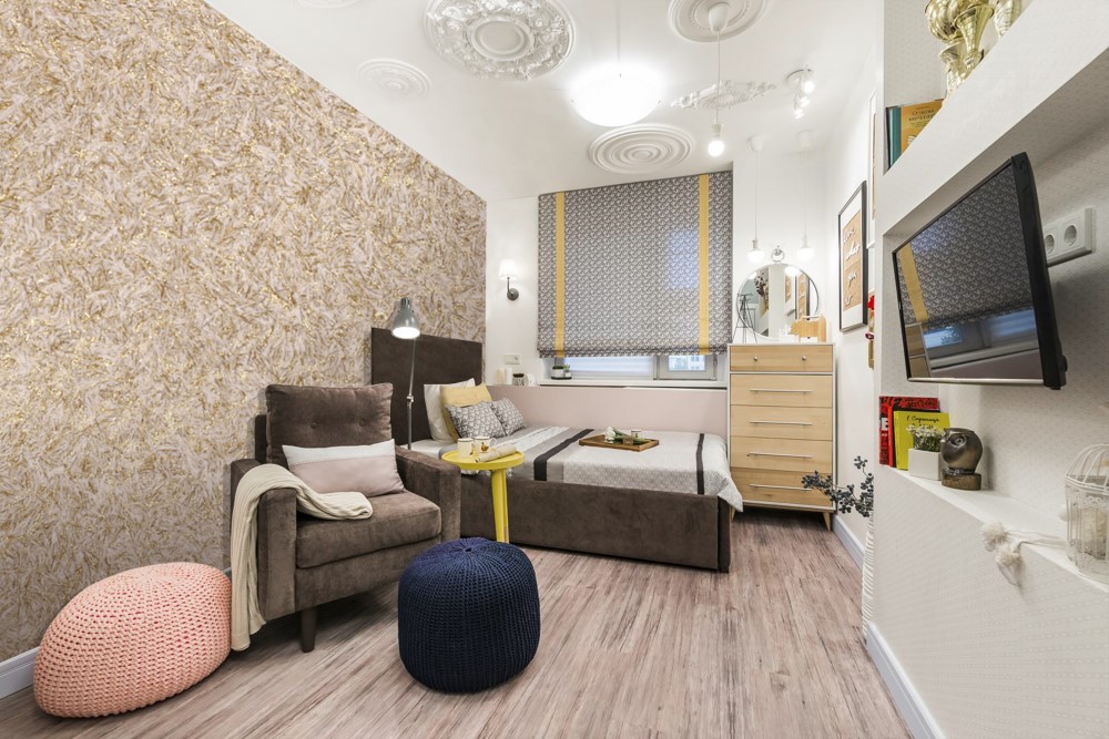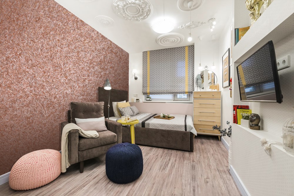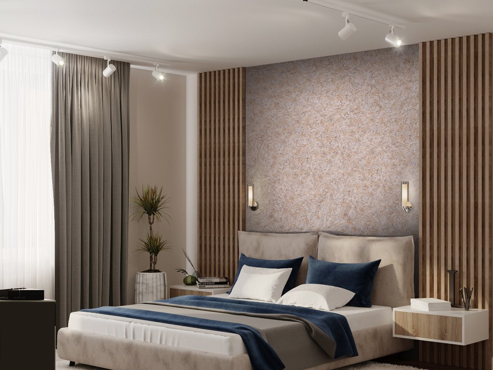 Tynk tekstylny we wnętrzu sypialni lub pokoju dziecinnego będzie wyglądał bardzo przytulnie i elegancko. Ta powłoka jest również dobra, ponieważ można tworzyć różne kombinacje kolorów, które przypadną do gustu obojgu małżonkom lub dzieciom w różnym wieku.