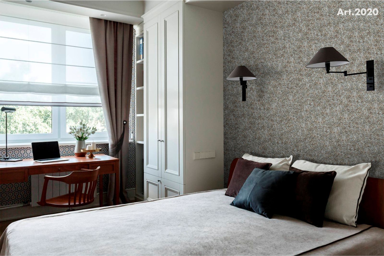 Ale kiedy przyszła kolej na naszą sypialnię, a ponieważ mieliśmy tylko jedną ścianę czekającą na zmianę tapety (ostatnim razem zmieniliśmy tylko część tapety, 3 ściany były jasne, a trzecia została, jak to się mówi, do lepszych czasach planowali wkleić tam tapetę o spokojnym białym kolorze. ..)